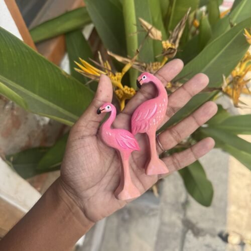 Our Flamingo Wooden Toy Set comes with two hand carved flamingos in two sizes, both painted in the most gorgeous shimmer pink with carved feather details. A beautiful set for imaginative play or display, handmade to order in Sri Lanka with non-toxic paints. 🦩✨