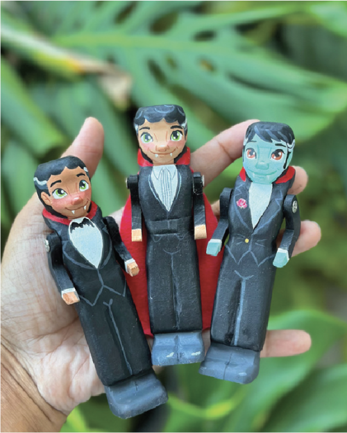 The standout feature of this wooden toy is its movable arms, allowing for positioning in countless poses. Kids will love the possibility of creating scenes or acting out mini vampire adventures, while collectors can display it in unique and expressive stances that fit the theme of their décor. Designed for durability, the toy is crafted to withstand hours of play without sacrificing aesthetic integrity. A perfect blend of mobility and artistry, this vampire toy is ready to captivate audiences of all ages.